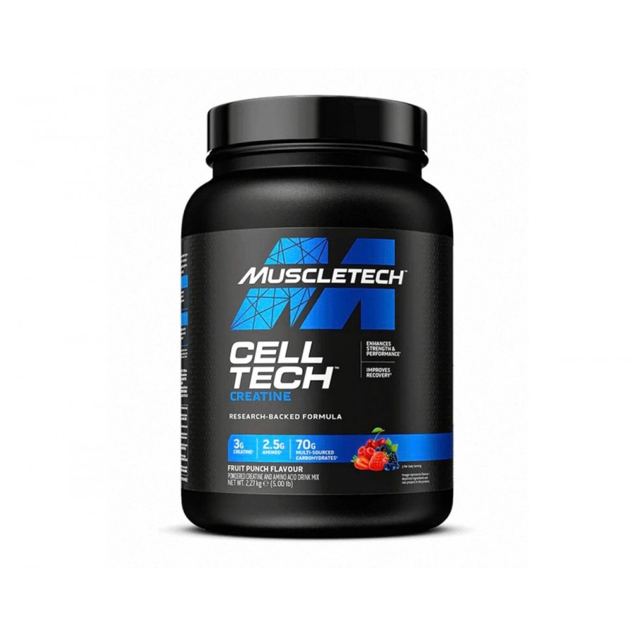 Η Cell-Tech είναι μια κρεατίνη που έχει σχεδιαστεί για την αύξηση της μυϊκής μάζας και την αύξηση της δύναμης. Είναι ένα εξαιρετικό προϊόν, καθώς κάθε δόση περιέχει έως και 3,5 g μονοϋδρικης κρεατίνης και κρεατίνης HCL, η αποτελεσματικότητα των οποίων έχει ήδη αποδειχτεί σε πολλές δοκιμές. Επιπλέον, τα άτομα που την χρησιμοποίησαν στις επιστημονικές δοκιμές πήραν κατά μέσο όρο 1,5 kg μυϊκή μάζα μέσα σε μόλις 7 ημέρες. Πέρα από αυτά τα συστατικά, περιέχει επίσης BCAA σε αναλογία 2: 1: 1 και τα αμινοξέα ταυρίνη και αλανίνη. Κάθε μεζούρα περιέχει επίσης 100 mg άλφα-λιποϊκού οξέος, το οποίο βελτιώνει την απορρόφηση κρεατίνης και γλυκόζης.