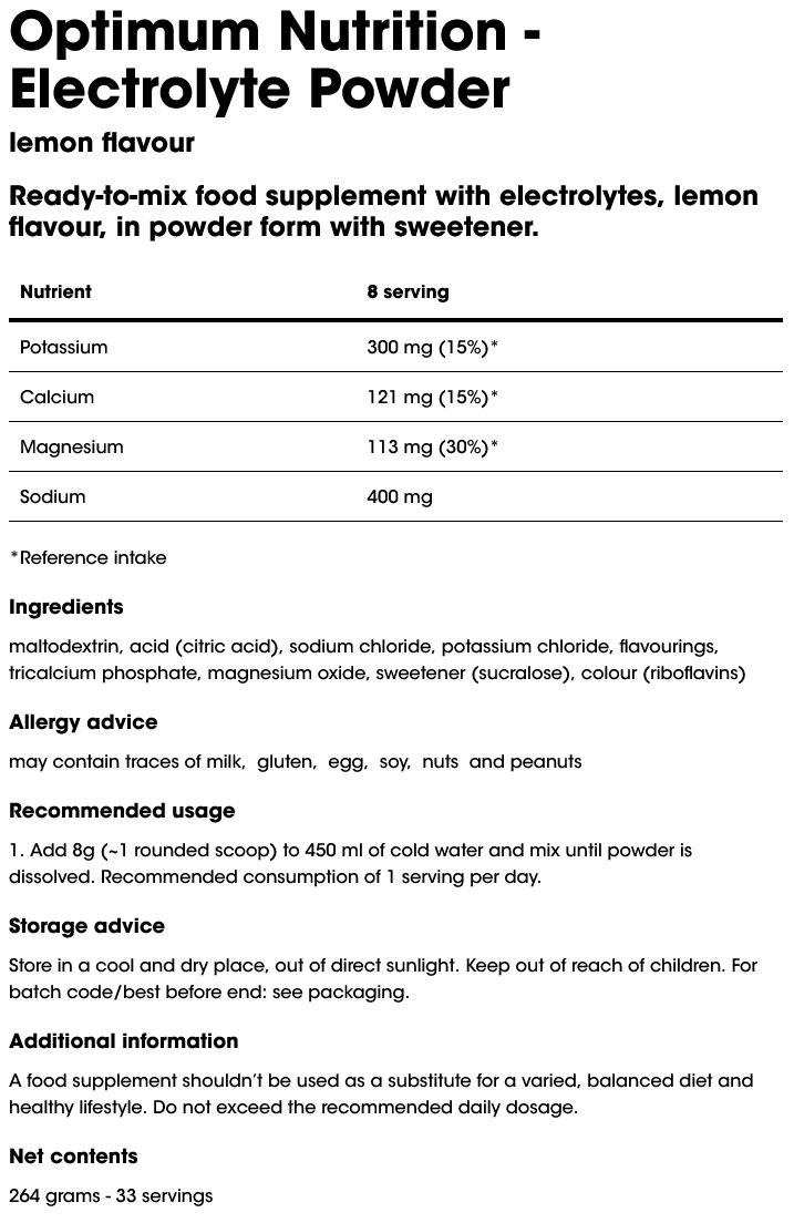 Optimum Nutrition Electrolyte Powder 400mg 264gr
